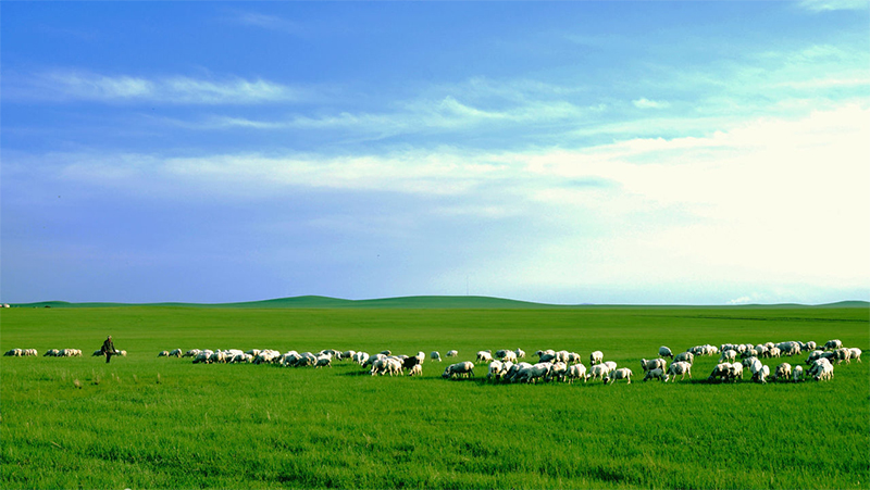 繞過大山,大地如一張折疊著的紙被突然展平。眼前變得開闊了。一只鷹從公路的一邊滑翔到另一邊,當它從車頂上飛過時,整個貢格爾草原都慢了下來。風舒緩地吹皺了貢格爾河的河水,牛羊在路兩旁悠閑地散步。為了能及時躲避進入公路的牛羊,車子明顯放慢了速度。我的心恨不得插上翅膀,和剛剛飛過車頂的雄鷹一樣,好好看看這遼闊的草原。