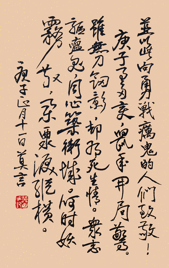 “同心驅(qū)癘鬼,眾志筑長城” 莫言 作