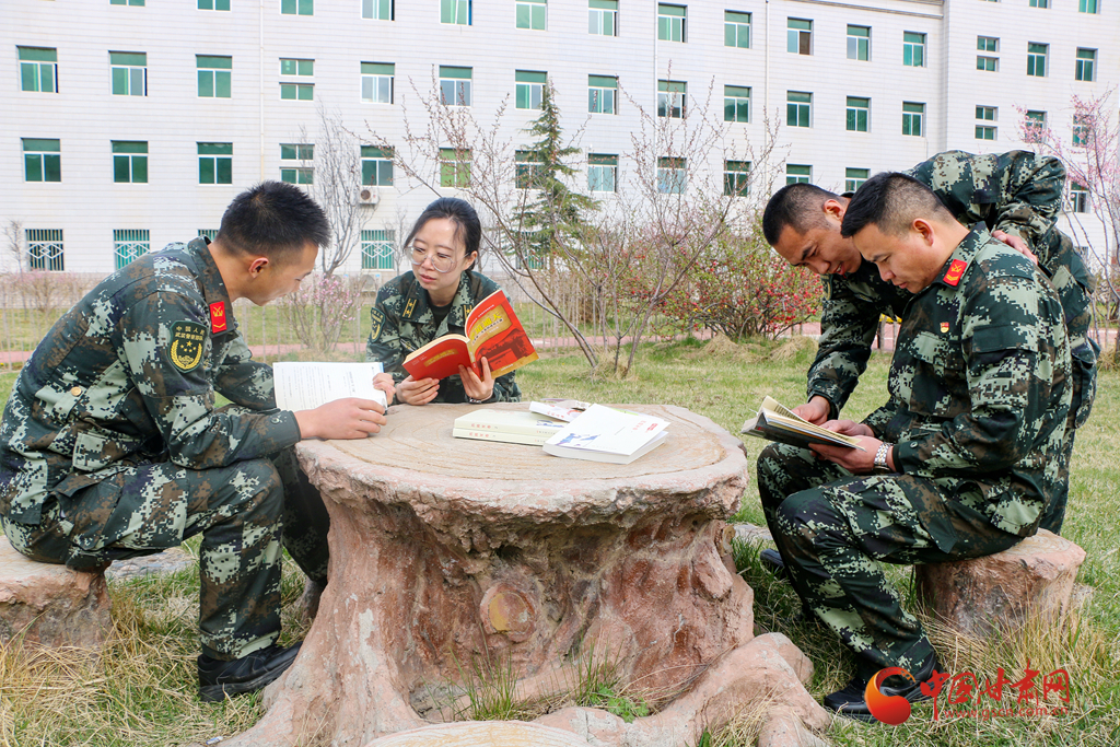 嘉峪關(guān)支隊(duì)官兵正在讀書學(xué)習(xí)