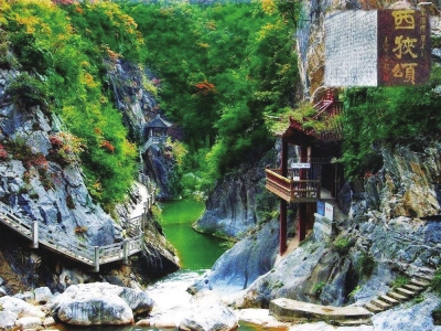由于路況寬闊平整,從成縣縣城驅(qū)車西行二十分鐘至東入口,便來到了號稱青山綠水間的書法博物館的魚竅峽,這里就是著名的西狹頌風景區(qū)。“光怪靈潭氣欲春,波平浪靜一輪存。鏡連五色龍成彩,珠映千鱗月映痕。”果然,這方寶地清幽綺麗,青山對峙,澗流清澈。峽內(nèi)的山、水、石、樹,皆成風景;亭、橋、廊、榭,相映成趣。舉目環(huán)望,山崖上綠樹層疊,其間亦或有古樹參天,老藤纏繞。兩山之間的響水河,或在峽谷中潺潺繞行,或在巨石間沖騰奔瀉,浪花激起的水聲。更美的是懸崖上的水,化成一條白練從高處垂落而下,直泄黃龍?zhí)?。西峽飛瀑“龍?zhí)队吃?rdquo;便成為成縣著名的八景之一,至今為世人津津樂道,贊嘆不已。