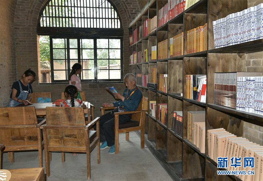 老苗書館就是在其中一處窯洞上修建而成。“這個院子共有8口窯洞組成,一百多年前由一戶苗姓人家修建,所以取名老苗書館。”51歲的苗樹生是書館的第一任館長,也是建設者之一。“我們是24小時開放,村民可以把書拿回家,還可以把家里的書拿來換著看,整個書館藏書5萬多冊,很多都是黨員干部和志愿者捐來的。”苗樹生說。