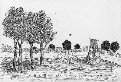 劉衍淮考察途中的畫作《額濟(jì)納河畔的觀測(cè)站》 (1927年9月28日)