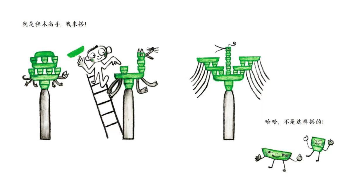 兒童蠟筆涂鴉式的拙趣畫(huà)風(fēng),配合生動(dòng)鮮活、天真質(zhì)樸的畫(huà)面,處處透著童真,更加符合孩子的審美趣味。透過(guò)簡(jiǎn)單童趣的意象,孩子可以展開(kāi)更多天馬行空的想象,給創(chuàng)新創(chuàng)造能力插上自由的翅膀。