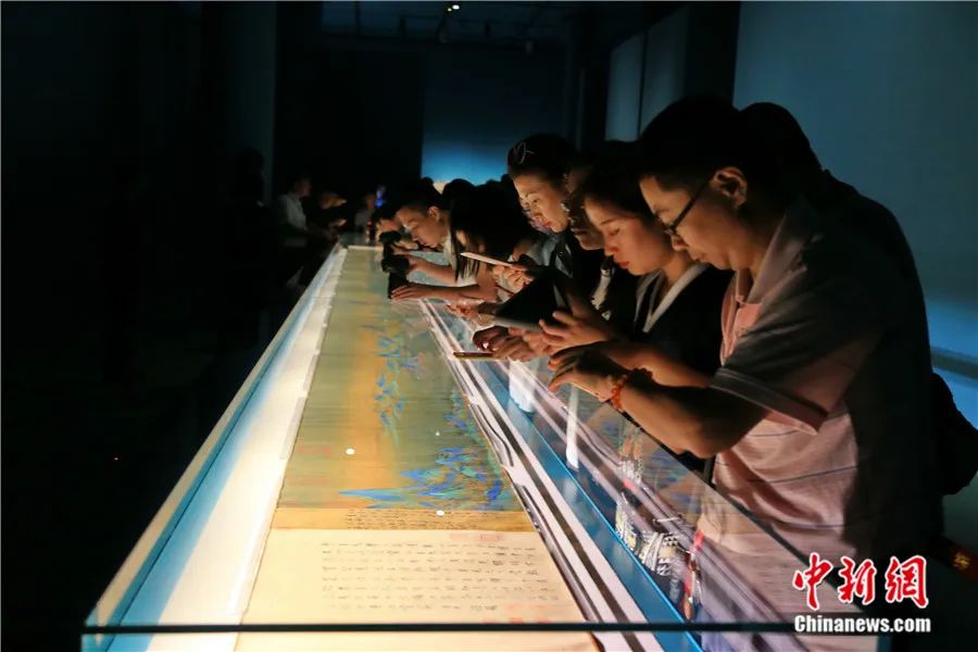 觀眾在北京故宮博物院參觀《千里江山圖》。中新社發(fā) 劉憲國(guó) 攝