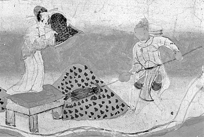 芒種時(shí)節(jié),農(nóng)人收割和揚(yáng)場(chǎng)的情景。揚(yáng)場(chǎng) 莫高窟第61窟(五代) 選自《敦煌歲時(shí)節(jié)令》
