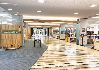 圖為美國(guó)康奈爾大學(xué)歐林圖書(shū)館內(nèi)景