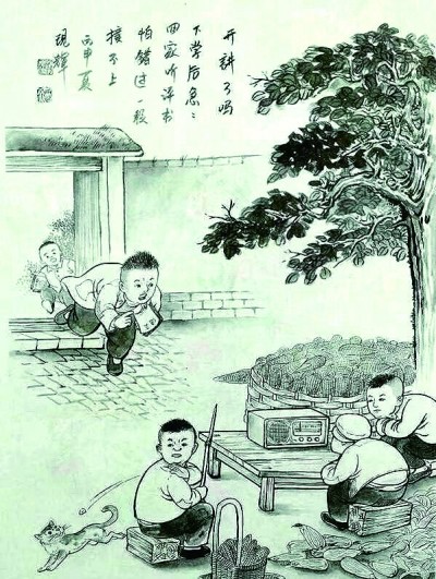 劉現(xiàn)輝的一套四冊(cè)繪畫(huà)作品《童年那些事兒》(花山文藝出版社出版),就是一次目光穿越時(shí)光阻隔,對(duì)童年和故鄉(xiāng)的深情佇望。經(jīng)由長(zhǎng)久而專注的凝視,一縷縷游絲般輕淡的鄉(xiāng)思,逐漸擴(kuò)展匯聚成一種濃郁的故土深情,仿佛滿天云錦,在靈魂的天空閃現(xiàn)著動(dòng)人的光華。