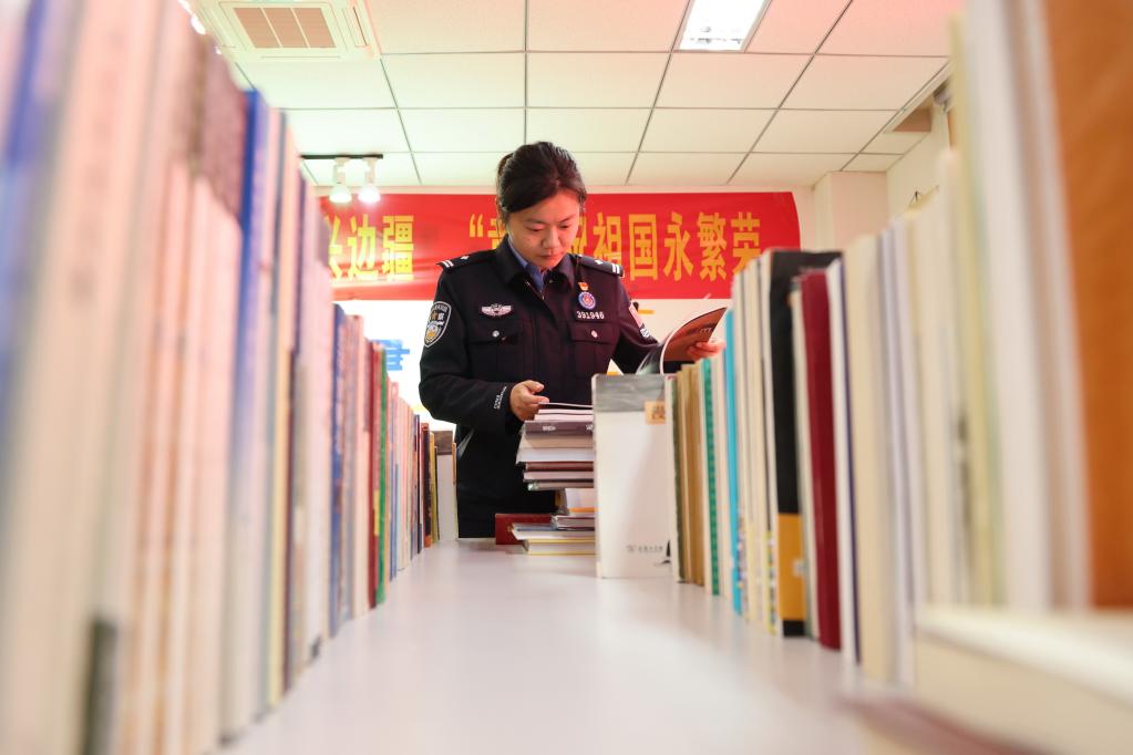 民警在圖書室里閱讀書籍。(張雨強攝)