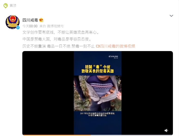 四川省戒毒管理局在此次發(fā)聲中表示,中國是禁毒大國,是世界上列管毒品最多、管制最嚴的國家,對毒品是零容忍態(tài)度。面對暴戾的毒販,緝毒警察每一次抓捕都以命相搏。聲明強調(diào),抵制“毒”小說,致敬英勇的禁毒英雄。