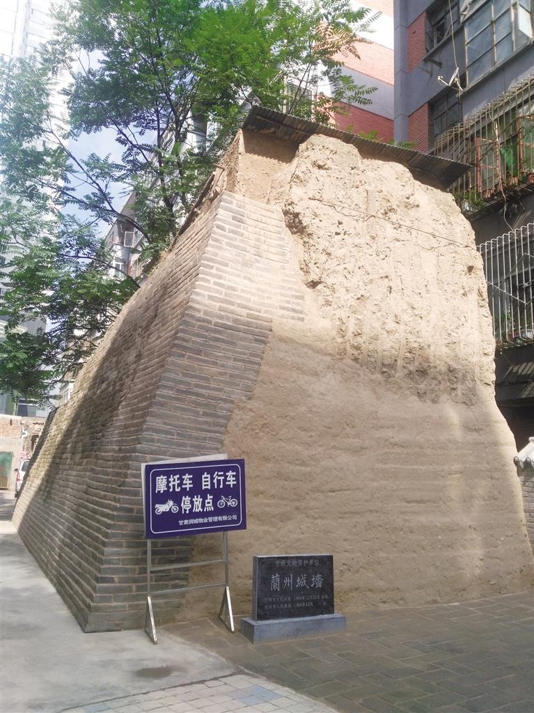 蘭州城墻絕大部分消失于20世紀(jì)50年代,剩余的在改革開放后,隨著城市建設(shè)的飛速發(fā)展而被拆除。蘭州的古城,已經(jīng)在人們的視野中消失。在城關(guān)區(qū)張掖路街道金塔巷東口南側(cè)南關(guān)什字潤城佳園小區(qū)內(nèi),還殘留了一段城墻,是蘭州老城內(nèi)南部城墻的一段,也是明清時(shí)期蘭州城墻最后的見證。這段城墻遺址夯土構(gòu)筑,外包砌青磚。南側(cè)表面磚層厚0.7米,長9.1米;城墻東側(cè)土層厚1.2米,現(xiàn)長不足4米,高約7米,城墻上面,還有人建了一間小房子。這是目前蘭州城區(qū)唯一留下的古城墻。1984年10月20日,被蘭州市人民政府公布為蘭州市文物保護(hù)單位。不知道能不能長久保留下去?
