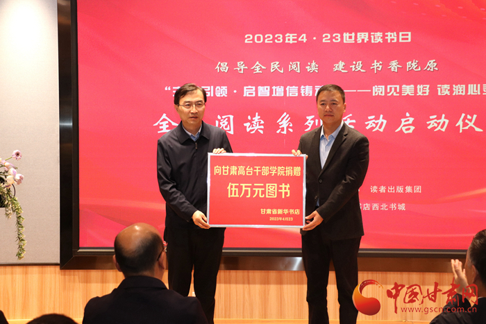 啟動儀式上,讀者出版集團黨委書記、董事長梁朝陽向高臺干部學院捐贈圖書并宣布系列活動正式啟動。讀者出版集團黨委委員、副總經理王光輝與甘肅省新華書店黨委書記、董事長張曉東向讀者代表“甘肅好人”景正紅、“優(yōu)秀護士”嚴曉麗、“公安之星”王令成、“優(yōu)秀教師”王云芳捐贈圖書。