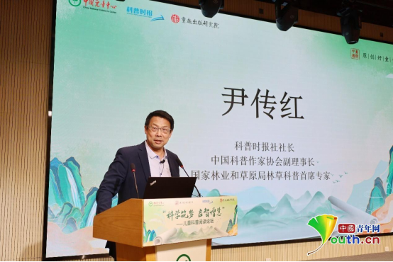 科普時報社社長、中國科普作家協(xié)會副理事長、國家林業(yè)和草原局林草科普首席專家尹傳紅發(fā)表題為“激發(fā)想象力和探求欲的科普閱讀”的主題演講。尹傳紅認為科普閱讀可以與孩子的智力發(fā)育同步進行,科學可能是最能彰顯問題、發(fā)現(xiàn)問題、解決問題的重要領域,科普閱讀能幫助孩子增長知識、增加智慧、增進思想。