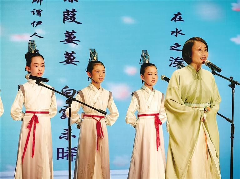 在《壯美山河絢麗詩篇》中,《詩經(jīng)·秦風·蒹葭》在蘭州市東郊學校曹林老師和方培丞等12位小朋友的演繹下,古風古韻氣息撲面而來。