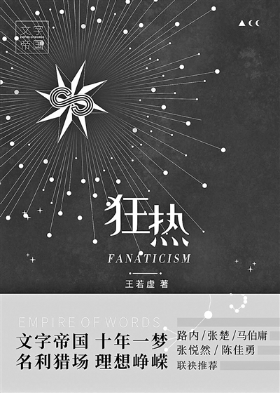 2010年10月發(fā)表于《萌芽》雜志的《文字帝國(guó)·微生》,是王若虛“文字帝國(guó)”的首秀。這篇小說(shuō)頗具少年維特之煩惱色彩,講述了文學(xué)青年的青春躁動(dòng)與命運(yùn)沉浮。隨后發(fā)表的系列小說(shuō)《瘋女王》《小宇宙》《同小姐》,到《沒(méi)有書的圖書館》《光環(huán)》《腰封無(wú)用》等具有一致性和連貫性——它們?nèi)烤劢刮膶W(xué)青年的成長(zhǎng)史,描寫他們?cè)诿鎸?duì)選擇時(shí)的焦慮與茫然、沖動(dòng)和欲望,借以展現(xiàn)21世紀(jì)初的“青春”的文學(xué)史。《狂熱》作為這一系列最新的長(zhǎng)篇小說(shuō),將眼光投向聚光燈外的無(wú)名作家和小眾作家,以后青春式的視角重新回到21世紀(jì)初的文學(xué)現(xiàn)場(chǎng)。新作中,王若虛采用了一種更加貼近當(dāng)下與現(xiàn)實(shí)的維度重新審視當(dāng)時(shí)的文學(xué)創(chuàng)作,展示時(shí)代變化中理想與欲望的糾葛,緬懷屬于“80后”一代的特殊記憶。