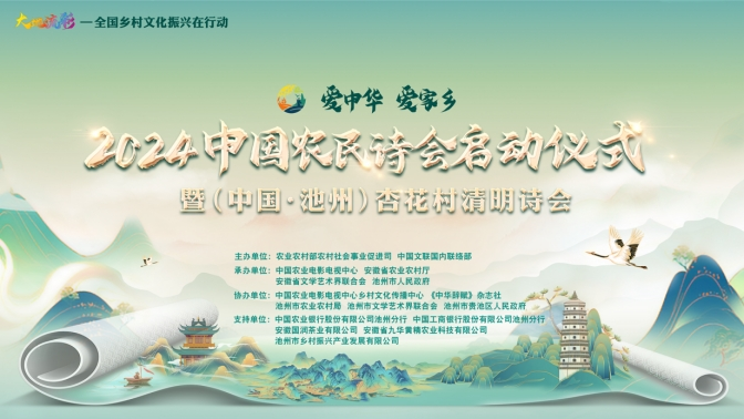 大地流彩,詩賦“三農(nóng)”。3月31日,“大地流彩—全國(guó)鄉(xiāng)村文化振興在行動(dòng)”重點(diǎn)活動(dòng)“愛中華愛家鄉(xiāng)”2024中國(guó)農(nóng)民詩會(huì)啟動(dòng)儀式暨(中國(guó)·池州)杏花村清明詩會(huì)在安徽池州杏花村文化旅游區(qū)舉辦,主題為“春和景明詩出池州”。本次活動(dòng)由農(nóng)業(yè)農(nóng)村部農(nóng)村社會(huì)事業(yè)促進(jìn)司、中國(guó)文聯(lián)國(guó)內(nèi)聯(lián)絡(luò)部主辦,中國(guó)農(nóng)業(yè)電影電視中心、安徽省農(nóng)業(yè)農(nóng)村廳、安徽省文學(xué)藝術(shù)界聯(lián)合會(huì)、池州市人民政府承辦。