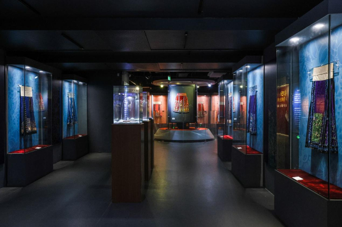 “衣生萬物 傳統(tǒng)重構(gòu)——五色華彩馬面裙”展覽探尋和呈現(xiàn)馬面裙的歷史以及中國古人的制衣智慧與美學(xué)風(fēng)尚,近百條傳統(tǒng)馬面裙實(shí)物及多件當(dāng)代創(chuàng)新設(shè)計(jì)將持續(xù)展出至7月18日。展覽運(yùn)用了“五行五色”中國傳統(tǒng)色彩觀念,將展區(qū)分為赤、藍(lán)、黃、白、黑五個正色板塊,以及綠和多彩(月華裙)等間色板塊。在展示方式上,傳統(tǒng)馬面裙以平面展示為主,當(dāng)代創(chuàng)新設(shè)計(jì)的馬面裙則以人臺的立體展示為主。