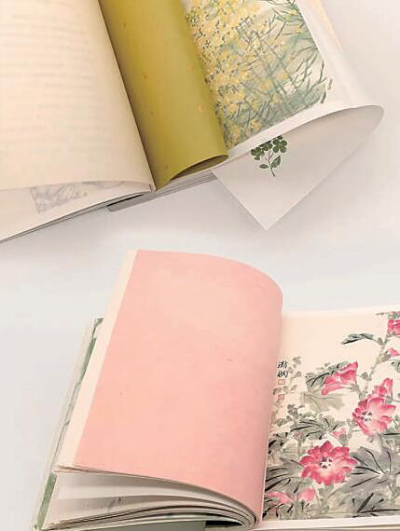 為了更好地呈現(xiàn)書籍裝幀效果,封面制作采用純色立體加印,不加任何裝飾。書中還配有由藝術(shù)家親手繪制的24幅珍藏版植物大圖,色彩溫潤典雅,撕取后還可自行裝裱。該書采用了傳統(tǒng)三孔古線裝的裝訂方式,以純天然麻繩全手工裝訂、配頁,共計58道工序。紙張切面三方全磨毛邊,呈現(xiàn)出自然肌理。章節(jié)頁所作的翻折處理,使得植物圖像在手工紙的覆蓋下若隱若現(xiàn),虛實相生,既提升了主題的表現(xiàn)力,也增添了閱讀的趣味。