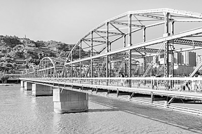 以百年時(shí)間看黃河,《黃河中國》彰顯黃河古文明之上崛起的現(xiàn)代文明。在書中我特意寫了三座百年黃河鐵橋,它們分別是蘭州黃河鐵橋、鄭州平漢鐵路黃河橋和濟(jì)南濼口黃河鐵路橋。一百年放置在歷史長河里不算長,卻是一個較為合適的觀照近現(xiàn)代中國發(fā)展的時(shí)間點(diǎn)。從擺渡、繩渡到石橋、木橋、浮橋、鐵路橋、公路橋,橋梁建筑史的發(fā)展足以證明人類社會的進(jìn)步。黃河上最初修建鐵橋的歷史在晚清末年,正是中華民族處于內(nèi)憂外患之際,光緒二十六年(1900)清政府決定修建平漢黃河鐵路橋,這是黃河上的第一座鋼鐵建筑,然而在1938年抗戰(zhàn)烽火中,為阻擋日軍進(jìn)攻,被炸毀了,現(xiàn)在只剩下5孔橋墩。以5孔橋墩存在的黃河第一座鐵橋,象征著黃河上現(xiàn)代工業(yè)文明的興起與民族深深的精神創(chuàng)傷。如今80多年過去了,鄭州地段已經(jīng)修建了十余座黃河橋,每一座都很現(xiàn)代很漂亮。自新中國成立以來,黃河安瀾75年,從戰(zhàn)火紛飛到國泰民安,黃河是國家昌盛、民眾幸福的最好見證者。
