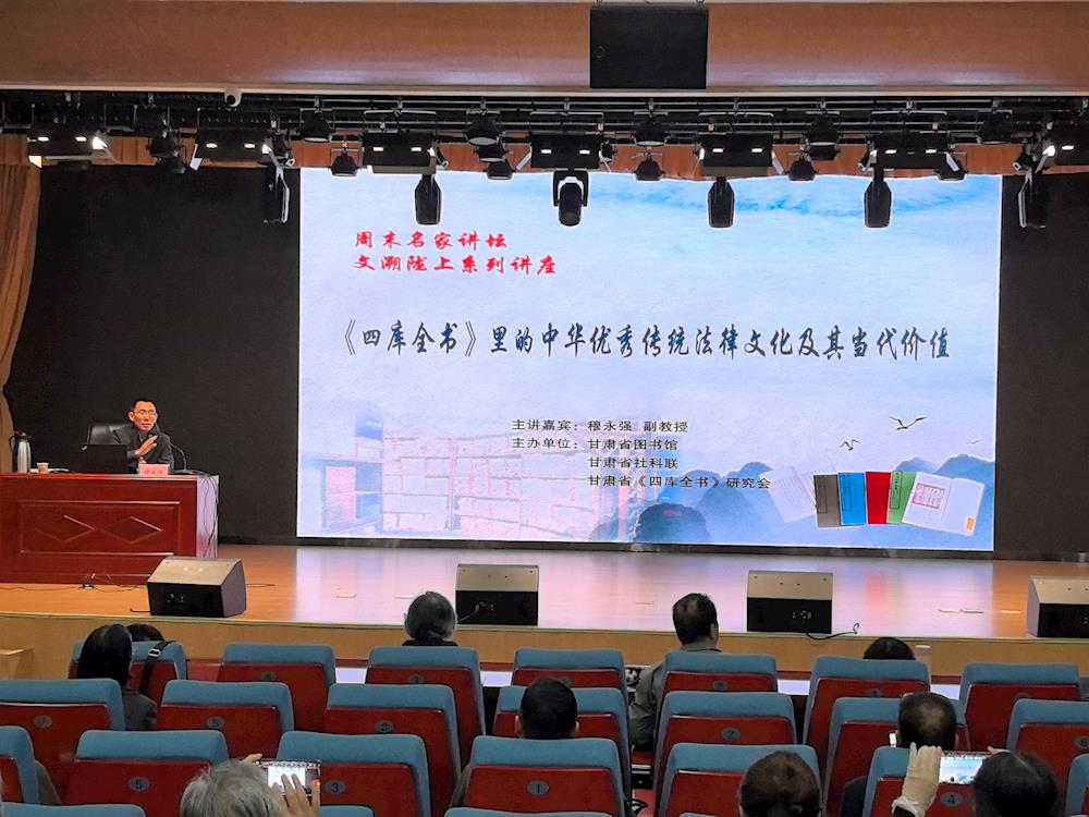 10月19日上午,“周末名家講壇”文溯隴上系列講座邀請(qǐng)到蘭州理工大學(xué)法學(xué)院副教授、碩士生導(dǎo)師、文化遺產(chǎn)法研究所所長穆永強(qiáng)作了題為《<四庫全書>里的中華優(yōu)秀傳統(tǒng)法律文化及其當(dāng)代價(jià)值》的講座。