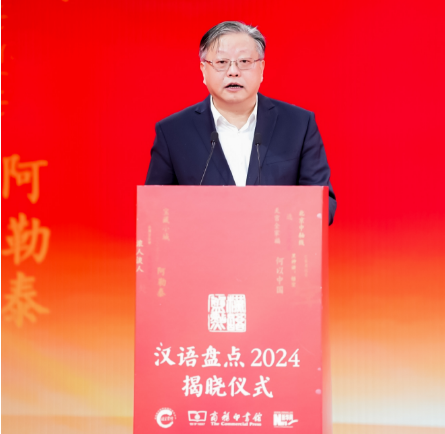 商務(wù)印書(shū)館黨委書(shū)記、執(zhí)行董事顧青在“漢語(yǔ)盤(pán)點(diǎn)2024”年度字詞揭曉?xún)x式上致辭。新華網(wǎng) 發(fā)