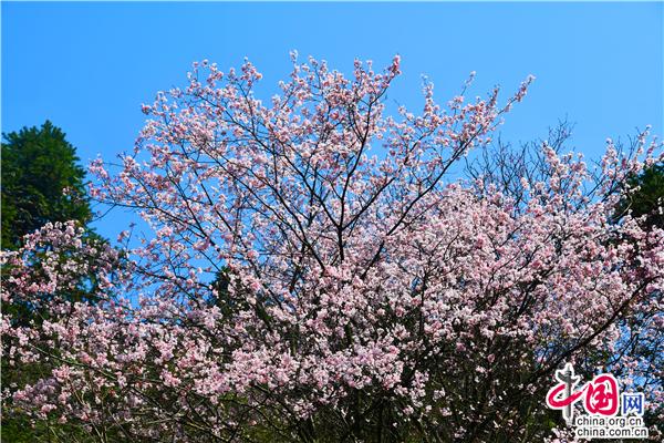 湖南新邵“長(zhǎng)壽村”萬(wàn)畝櫻花怒放 宛若七彩水墨畫