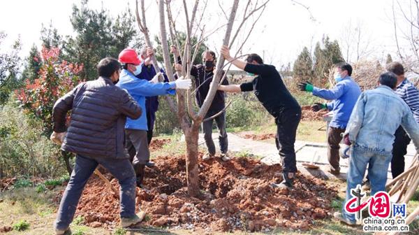合力扶苗、揮鍬填土、踩實壓緊、提桶澆水……3月10日,在湖南省武岡市荷塘村義務(wù)植樹基地,黨員群眾分工協(xié)作、相互配合,每個環(huán)節(jié)都一絲不茍。經(jīng)過一上午的忙碌, 一棵棵櫻花樹迎風(fēng)挺立,把山頭裝點得綠意盎然。今年,武岡繼續(xù)啟動55個美麗鄉(xiāng)村綠化美化建設(shè),繼續(xù)改善城鄉(xiāng)環(huán)境,提高人民群眾的獲得感和幸福感,為爭創(chuàng)省級森林城市“添磚加瓦”。
