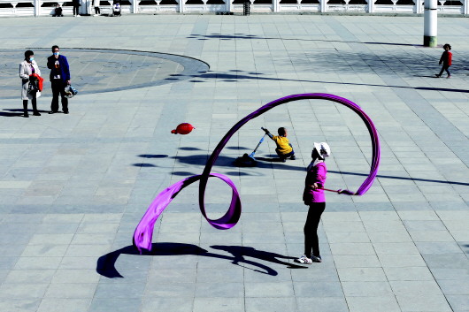3月22日,在崆峒區(qū)南山生態(tài)公園,市民晨練。記者 楊昕 攝