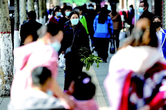 3月22日,在崆峒區(qū)圓通寺路,采購(gòu)蔬菜的市民。記者 楊昕 攝