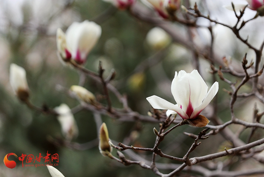 蘭州植物園有玉蘭園,盛花期如白鴿紛飛。