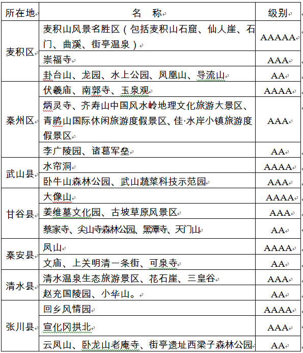 天水市國(guó)家A級(jí)旅游景區(qū)恢復(fù)開(kāi)放名單