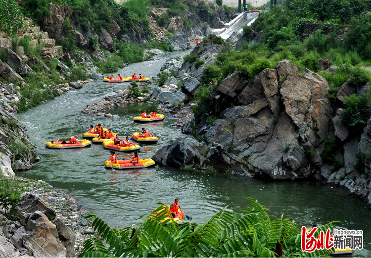 嶂石巖峽谷漂流是河北地區(qū)規(guī)模較大、自然河道較長、基礎(chǔ)設(shè)施完善、生態(tài)保護(hù)較完好的峽谷漂流,全程15.8公里,落差240米,塑造了“江北第一生態(tài)漂流”主題品牌,是戶外運動休閑的不二選擇。