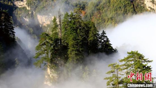 圖為險峻山峰間云霧繚繞?!●R天云 攝