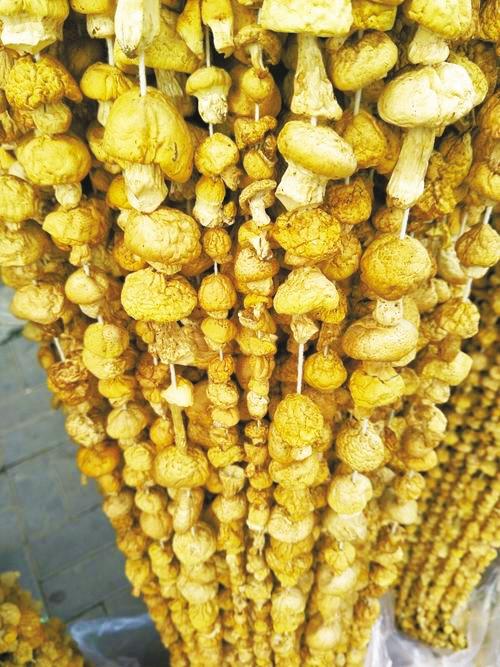 在張掖的土特產(chǎn)品店有售賣晾干的祁連山野蘑菇——出產(chǎn)于祁連山海拔1700至3600米左右的平山坡一帶無污染地區(qū),氣味純正、芳美可口,備受人們的青睞。于是在張掖一帶,便多了一種美食——野蘑菇面片。有幸在當(dāng)?shù)匾患业昶穱L一番,鮮美無比。