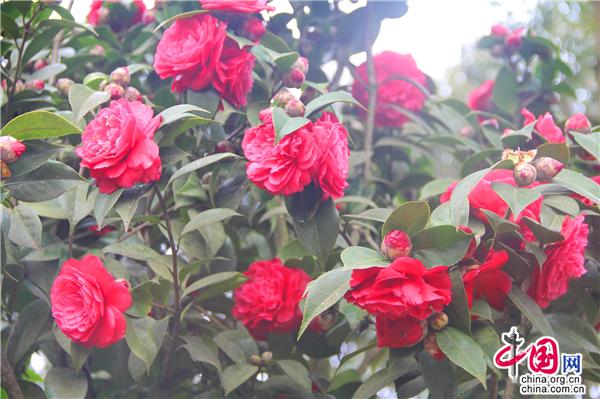 一輪艷陽照四方,一席春風(fēng)綠千山。山茶花是中國傳統(tǒng)名花,也是世界名花之一。2月21日,朋友相約,從縣城出發(fā),約8公里就進入九龍生態(tài)園,姿態(tài)各異的山茶花已進入盛花期,樹姿虬勁優(yōu)美,綠葉四季不凋,一朵一朵的茶花大如牡丹,燦如云霞,風(fēng)姿綽約,耀眼生輝!植株形姿優(yōu)美,葉濃綠而光澤,花形艷麗繽紛,美艷了。有的鮮紅如火、有的嬌羞染粉、有的晶瑩潔白……滿園茶花勝景。不經(jīng)意間清風(fēng)吹過,暗香徐來,朵朵花兒隨風(fēng)舞。陽光穿透葉子的縫隙,落在花間小道上,花香彌漫整個鼻腔,放低自己,品味花香,眼里有花、心里有花,人生就會像花一樣美麗。