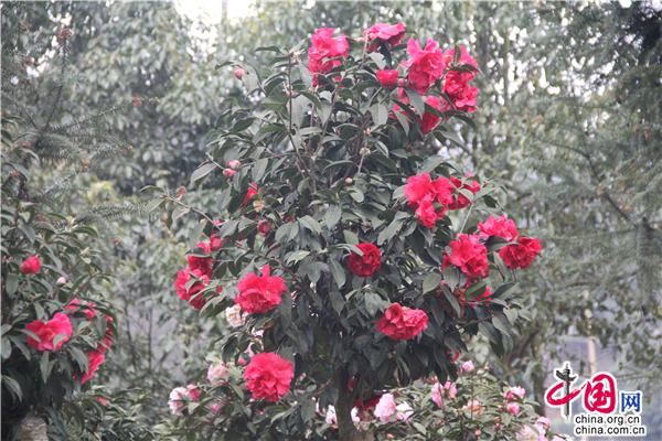 云南羅平小寨山茶花爭奇斗艷 生態(tài)園百花齊放
