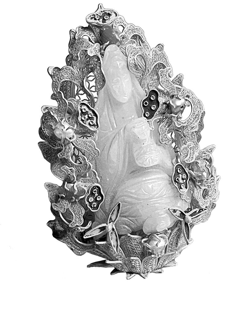 1986年,蘭州市博物館對白衣寺塔進行整體維護,從塔剎天宮處發(fā)現(xiàn)明代珍貴文物46件,其中有《大方廣佛華嚴(yán)經(jīng)》、鎏金釋迦牟尼銅造像、明代印花絲巾等文物,尤其是金蓮玉雕抱子觀音簪和金蓮玉雕魚籃觀音簪,造型精致,做工精美,表現(xiàn)了很高的明代金累絲手工制造技術(shù)水平,簪柄有銘文21字,“崇禎五年捌月初拾日肅王妃熊氏施伴讀姚進兼裝”,被定級為國家一級文物。