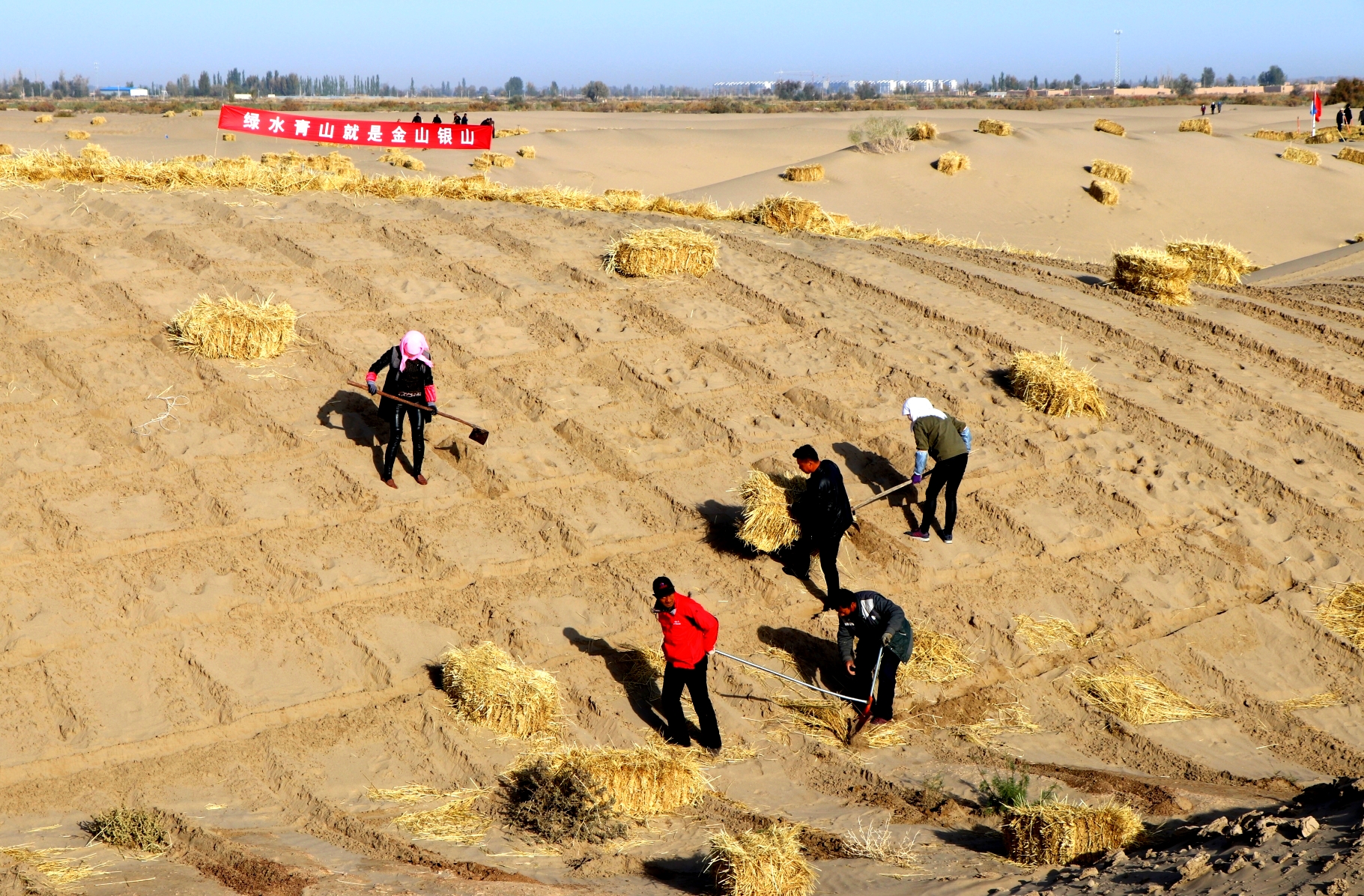 棉花稈、芨芨草、砂礫石、尼龍網(wǎng)、土工編制袋、粘土沙障、化學(xué)固沙等治沙新技術(shù)提高了治理效率。