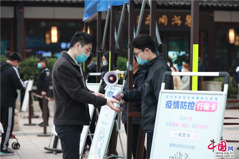 現場引導出示“健康碼”、測體溫,景區(qū)常態(tài)化防疫有條不紊;“周莊怎么玩”旅游目的地平臺提供專屬消費體驗,工作人員耐心解疑答惑,志愿者引導間隔出游,碼頭人員細心攙扶……