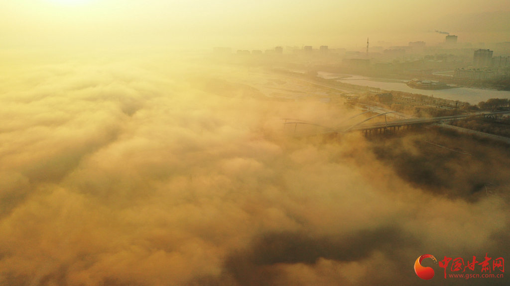 2月8日清晨,甘肅張掖市高臺(tái)縣黑河國(guó)家城市濕地公園上空霧浪翻滾,虛無(wú)縹緲,恍如天宮仙境,呈現(xiàn)出海市蜃樓般的云海奇觀,在陽(yáng)光的照射下,格外美麗。由于多年來(lái)黑河生態(tài)治理,冬天封凍,加之近日大范圍的降雪低溫天氣,黑河的水面上經(jīng)常霧氣蒸騰,兩岸的樹(shù)木玉樹(shù)瓊花,形成霧凇景觀,如同童話世界里的仙境一般圣潔,令人心曠神怡。