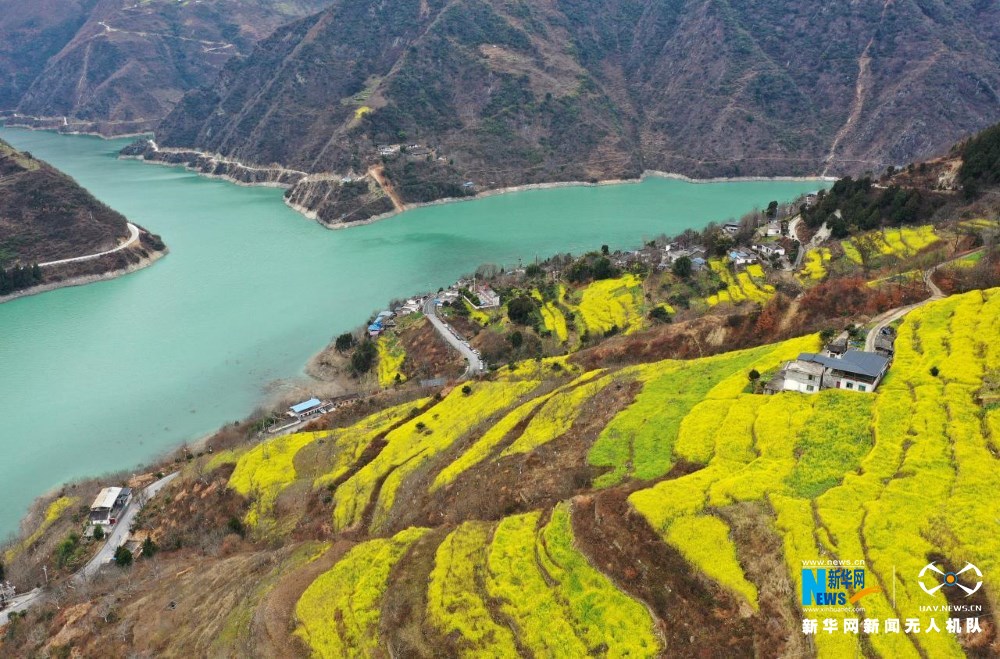 近日,甘肅省隴南市文縣白龍江流域的油菜花漸次盛開,金燦燦的油菜花與碧綠的江水交相輝映,呈現(xiàn)出生機勃勃的春日美景。新華網(wǎng)發(fā)(冉創(chuàng)昌 攝)