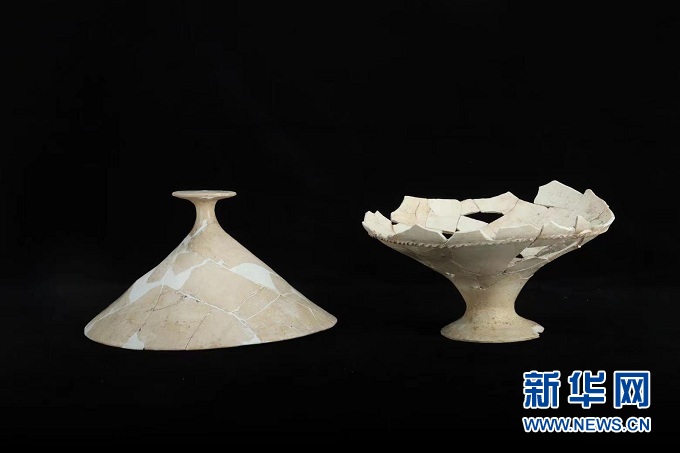 這是甘肅慶陽南佐遺址出土的白陶帶蓋圈足簋。(圖片由南佐遺址聯合考古隊提供)