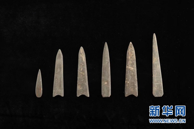 這是甘肅慶陽南佐遺址出土的涂有朱砂的石鏃。(圖片由南佐遺址聯合考古隊提供)