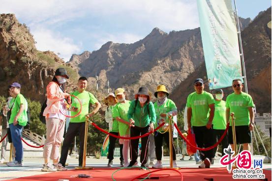 隨著一曲國(guó)壽版“本草綱目”健身操結(jié)束,領(lǐng)導(dǎo)嘉賓齊鳴槍后,一簇簇國(guó)壽綠在賀蘭山中由起點(diǎn)“黨建廣場(chǎng)”到站點(diǎn)1“滿江紅”再到站點(diǎn)2“青松嶺”,逐漸陸續(xù)綻放,這是第十六屆寧夏國(guó)壽客戶節(jié)絢爛盛開的印記。