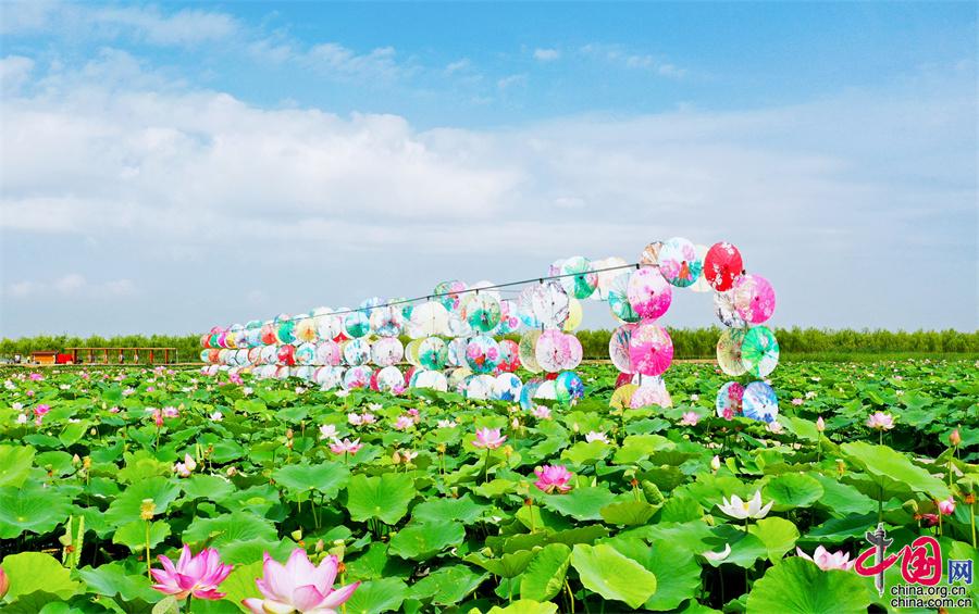 七八月份,正是荷花競相盛開的季節(jié),寧夏沙湖景區(qū)利用淺灘和鹽堿地種植觀賞性荷花,在湖東游線深處打造了西北沙漠旁的“萬畝荷花苑”,為景區(qū)夏日增添一抹韻味。成片的荷花在西北的驕陽下熠熠生輝,構成“接天蓮葉無窮碧”的塞上秀美荷塘景觀。