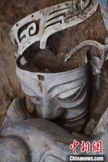 8號(hào)祭祀坑等待提取的青銅神獸。張浪 攝
