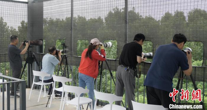 圖為鳥類攝影愛好者在觀鳥平臺上進(jìn)行拍攝?!∩G锶A 攝