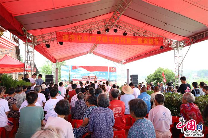 活動(dòng)現(xiàn)場(chǎng),邵東市政協(xié)黨組書記、主席羅健康宣布豐裕村首屆品桃節(jié)開幕。村民志愿者組織游客現(xiàn)場(chǎng)觀桃、品桃。舞蹈、花鼓戲、歌曲等由村里組織編排的精彩節(jié)目輪番上演,以文藝形式現(xiàn)場(chǎng)說桃、唱桃,贏得了觀眾的陣陣掌聲。豐裕村黃桃鮮嫩多汁、香甜可口,吸引游客紛紛前去基地摘桃、購桃,將活動(dòng)氛圍推向高潮。當(dāng)天,共銷售黃桃1萬余斤,銷售金額9萬余元。