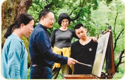 畫家們(左二為李躍亮)在沿坑嶺頭村寫生。