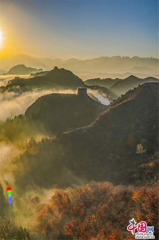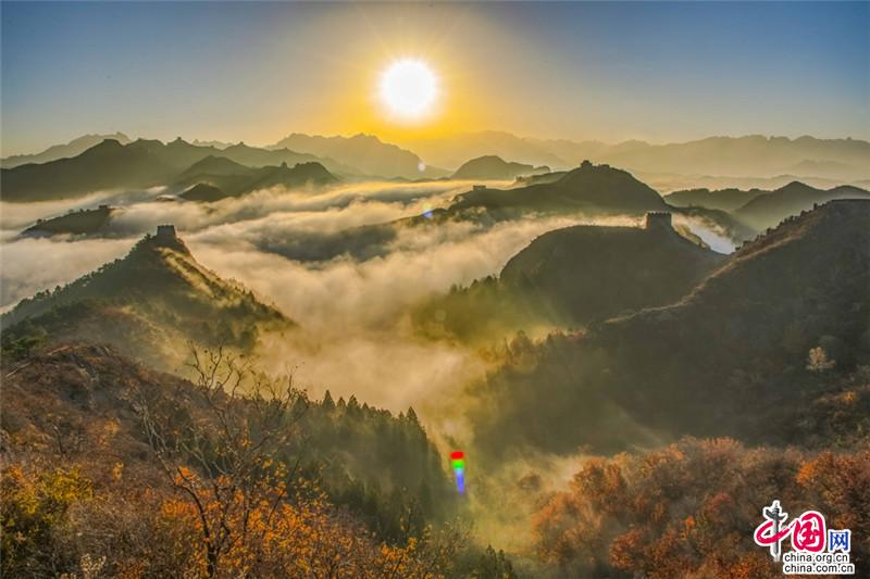 晚秋中的金山嶺長(zhǎng)城 云海日出彩葉羨煞人
