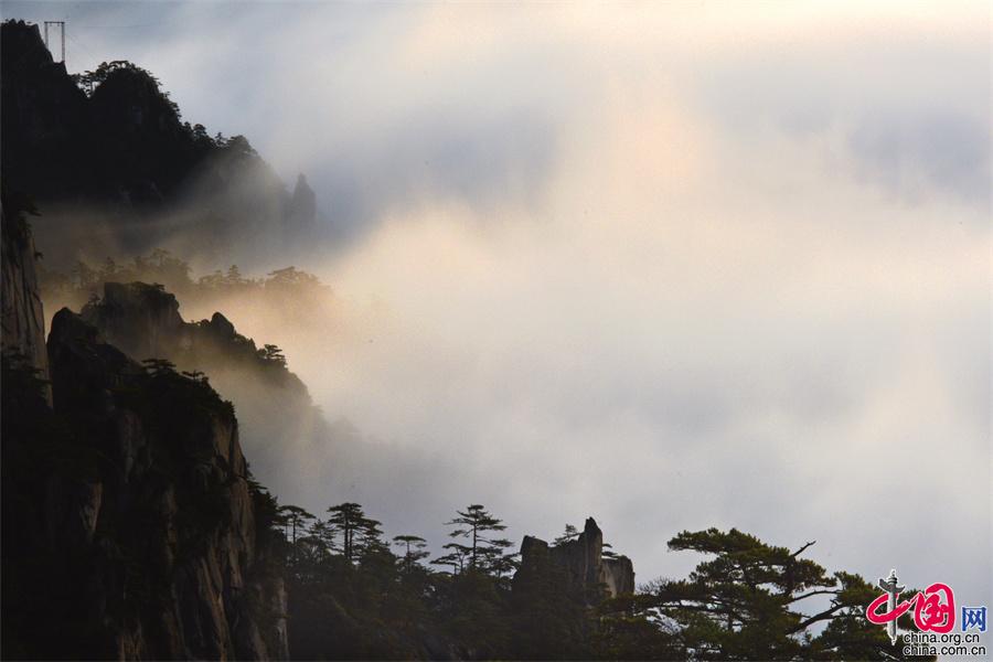 在黃山風(fēng)景區(qū)的始信峰,群峰中時而云海翻騰,時而霧靄朦朧,時而艷陽高照,還出現(xiàn)了佛光奇觀,勾勒出一幅幅黃山獨有的勝景。